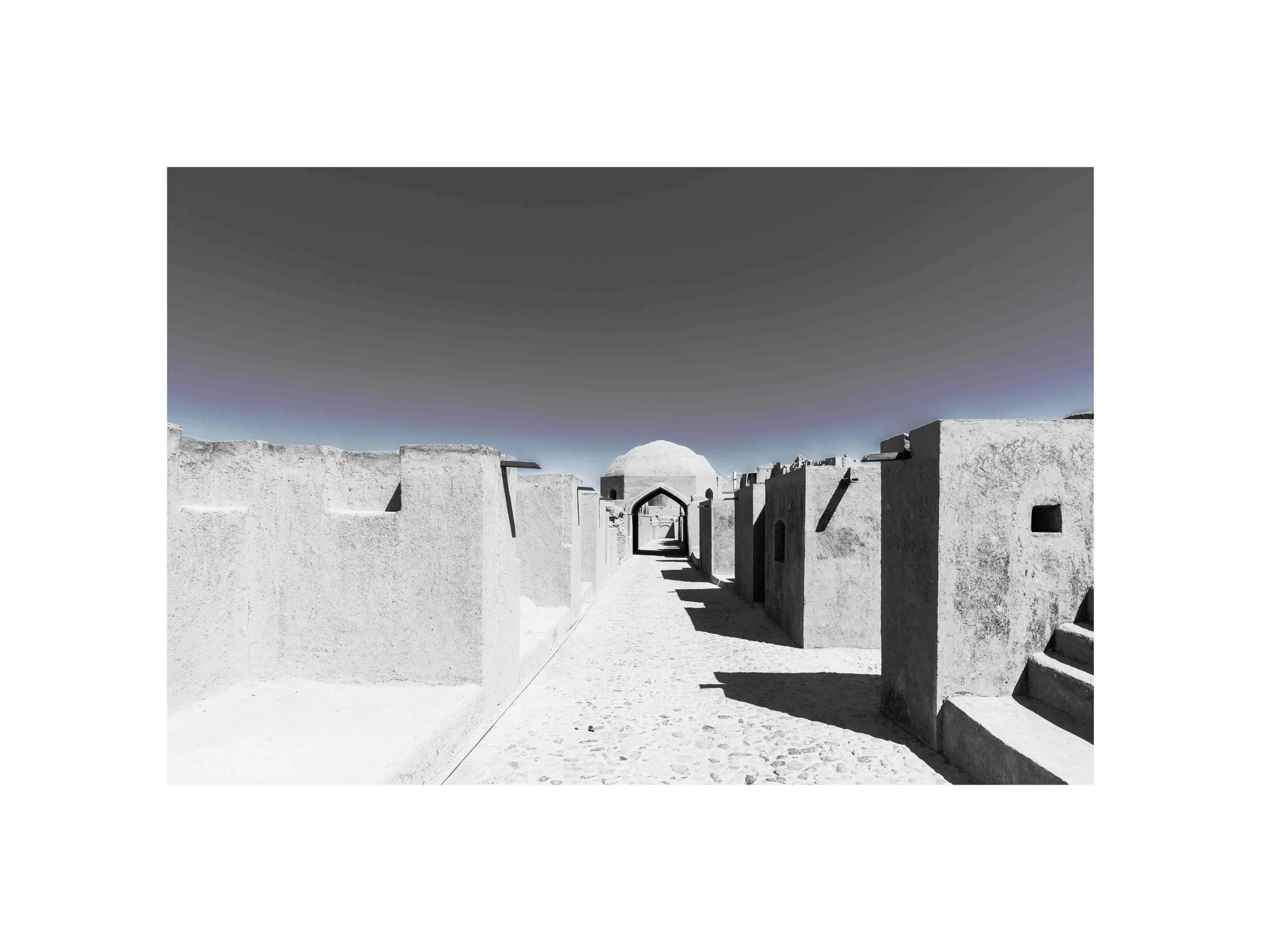 An old man — a local — is seated on the decaying old walls. A nod, he answers :