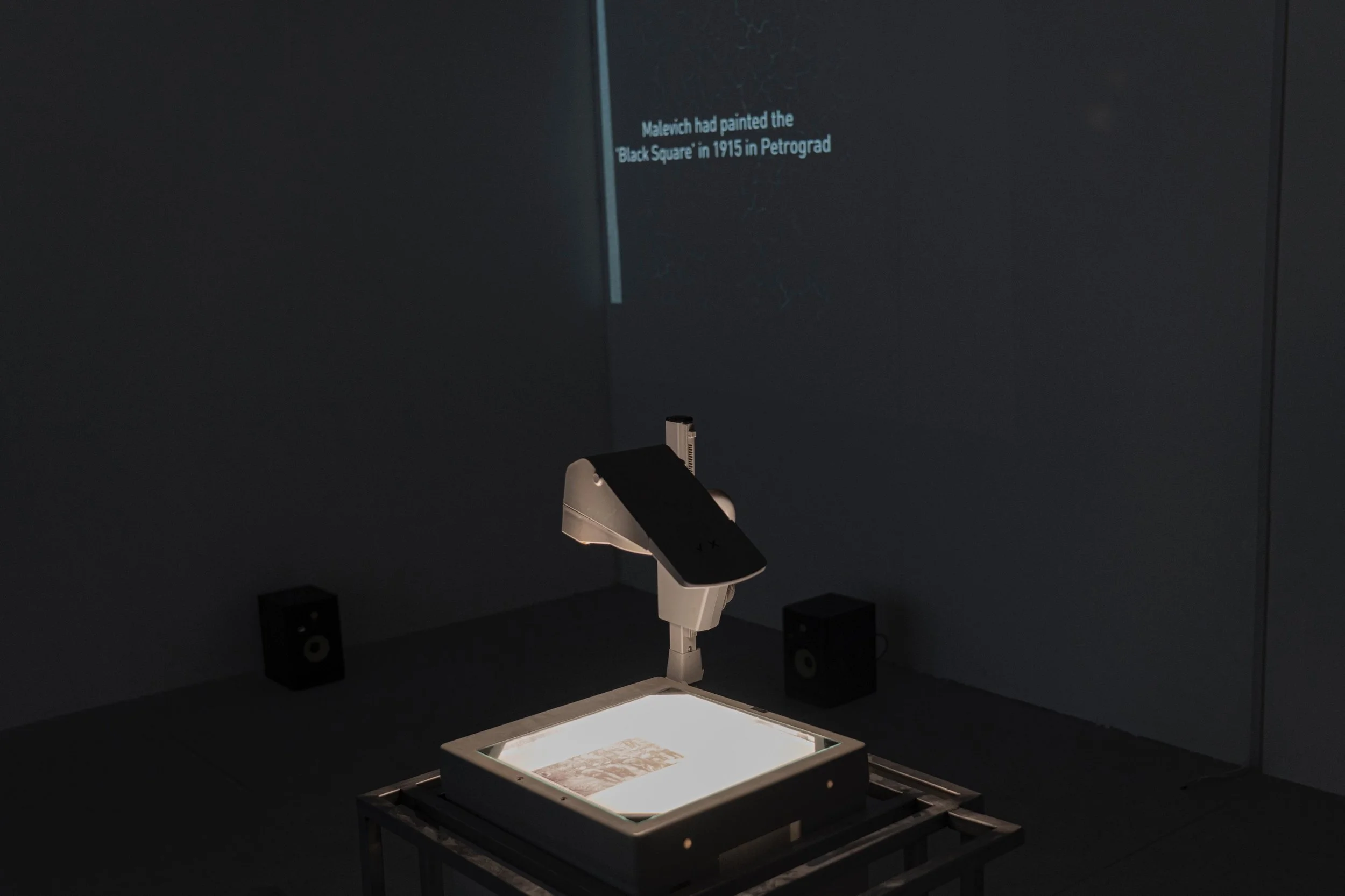 July Days is a mixed media installation that revolves around a single, blurry image taken around 1917. Purportedly representing the Red Army carrying Malevich’s ‘Black Square’, the photo allows for varying narratives, interpretations and hopes. Mingling archival footage with digital renders, July Days brings together a variety of voices that explore what such a photo can mean today.